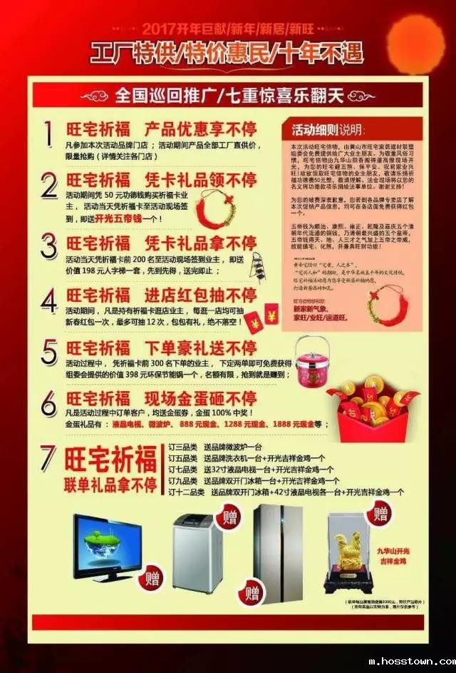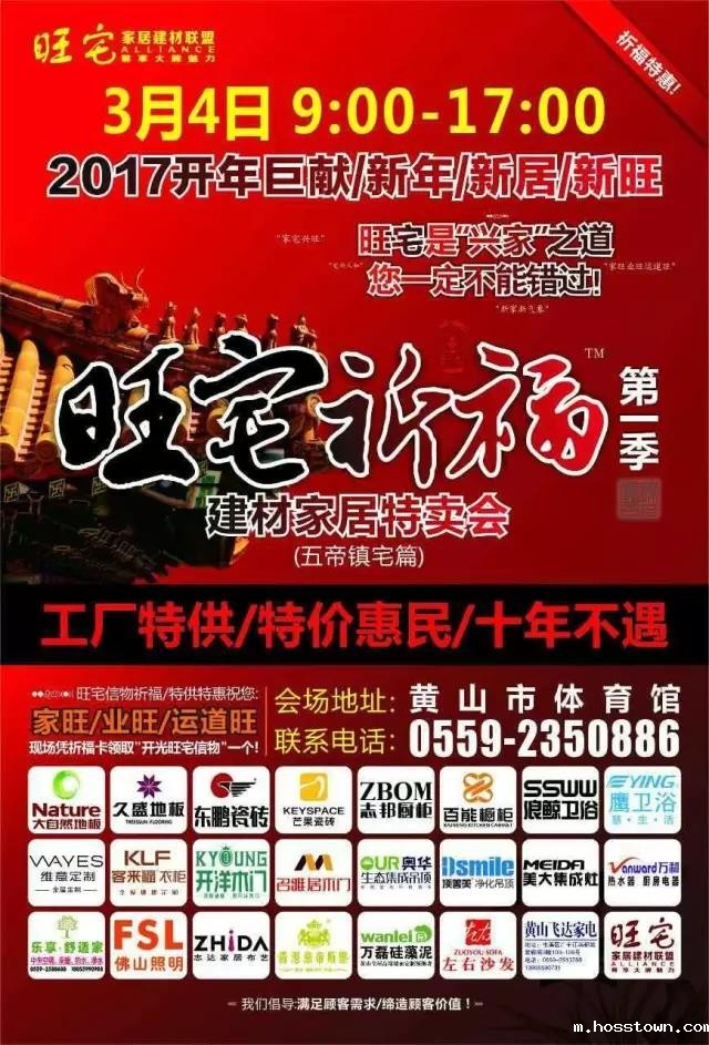2017开年巨献,黄山“旺宅祈福”建材家具特卖会将于3月4日隆重召开。